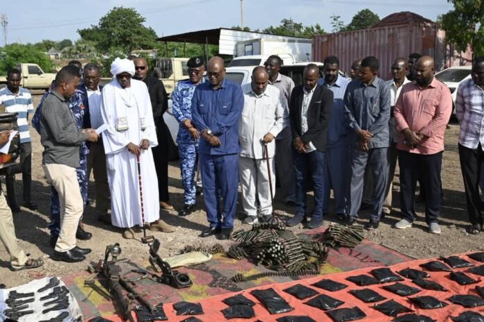 تمكن جهاز المخابرات العامة بولاية القضارف بالتنسيق مع استخبارات الفرقة الثانية مشاه بالقضارف من ضبط شبكة للاتجار وتهريب السلاح بين ولايتى القضارف وكسلا و الحدود السودانية الإثيوبية.واشاد والى الولاية المكلف الفريق الركن محمد احمد حسن خلال وقوفه ظهر اليوم بمقر الجهاز على كميات كبيرة من الاسحلة والذخائر التى تخص الشبكة والتى تم ضبطها و بحضور عدد من أعضاء لجنة الامن و مدير عام وزارة الصحة و التنمية الاجتماعية اشاد بهذا الانجاز الذى يصب في صالح تعزيز الامن والاستقرار والتصدى للمهددات الامنية مبينا ان الأسلحة والذخائر المضبوطة شملت الأسلحة التى تتعامل بها القوات النظامية مما يؤكد على أنها من العمليات النوعية الناجحة مطالبا القوات النظامية بتشديد الرقابة ورفع درجات اليقظة لمكافحة الظواهر السالبة والمضرة بالامن.فيما اوضح العميد امن دفع الله عمر الشيخ مدير جهاز المخابرات العامة بالقضارف ان العملية تمت بتنسيق عال وفريق مشترك ضم عدد من منسوبي الجهاز واستخبارات الفرقة الثانية مشاه مؤكدا المواصلة في إحباط كل المحاولات التى ترمى الى تهريب وانتشار السلاح وتجارته بالولاية.