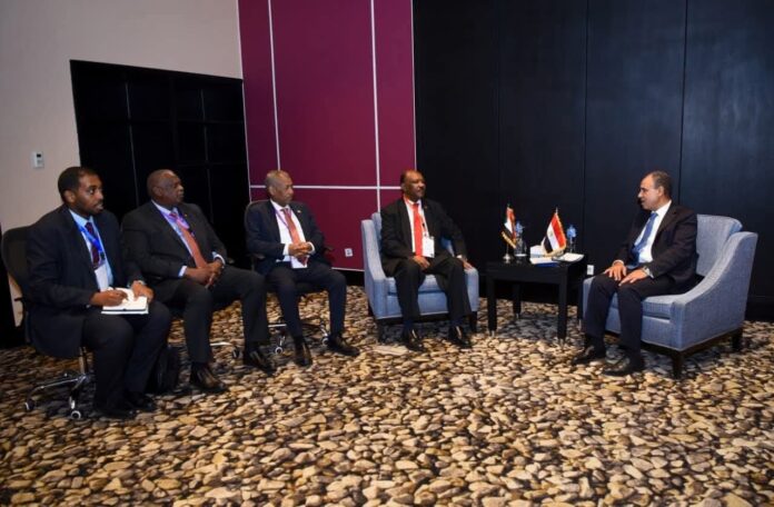 التقى السفير محي الدين سالم أحمد، وزير الخارجية والتعاون الدولي، مساء أمس الاحد، نظيره المصري د.بدر عبدالعاطي – وزير الخارجية والهجرة وشؤون المصريين بالخارج.وخلال اللقاء عبر وزير الخارجية والتعاون الدولي، عن سعادته بالمشاركة في اعمال منتدى أسوان للسلام والتنمية المستدامين ، مؤكدا ان المنتدى يعد منصة متميزة في طرح موضوعات نوعية وخلق شراكات جديدة بين الدول المختلفة.وجدد الوزير تقديره لمواقف مصر الداعمة للحكومة السودانية، مؤكدا تطلع السودان لمواصلة الجهود في دعم جهود تعافي قطاعات الدولة السودانية تمهيدا لعملية إعادة الإعمار.من جانبه، أكد وزير الخارجية المصري على مواصلة مصر جهودها لتحقيق الاستقرار في السودان، معرباً عن تضامن مصر الكامل مع السودان ودعم استقراره وأمنه وسيادته ووحدة وسلامة أراضيه ومؤسساته الوطنية، ومشيراً إلى انخراط مصر بصورة فاعلة في الجهود الهادفة لإنهاء الحرب. كما رحب بعقد فعاليات النسخة الثانية لملتقى رجال الأعمال المصري – السوداني الثاني خلال العام الجاري، وجهود عقد اللجنة التجارية المشتركة في القاهرة، واستقبال وفد فني سوداني لنقل التجربة المصرية في مجال الاستثمار.واستعرض وزير الخارجية والهجرة وشؤون المصريين بالخارج، الجهود المصرية لإعادة تعافي البنية التحتية في الخرطوم من خلال تنفيذ مشروع إصلاح وتأهيل كل من كوبري “الحلفايا” وكوبري “شمبات” ، مؤكداً استعداد مصر وتطلعها للإسهام في تأهيل قطاعات الكهرباء والمياه والصحة والتعليم في السودان.تطرق اللقاء إلى ملف الأمن المائي، حيث تم التأكيد على موقف البلدين كدولتي مصب لنهر النيل، و على ضرورة الالتزام الكامل بالقانون الدولي في حوض النيل الشرقي.