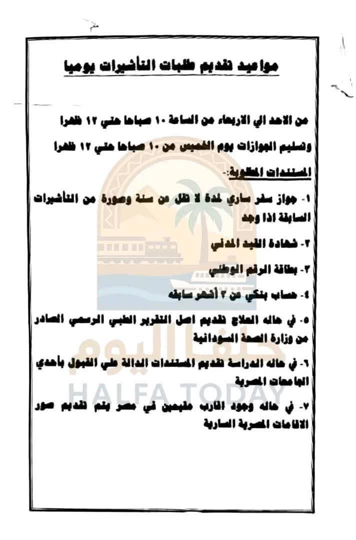 شروط وضوابط منح التأشيرة المصرية في القنصلية المصرية بـوادي حلفا..المستندات المطلوبه: