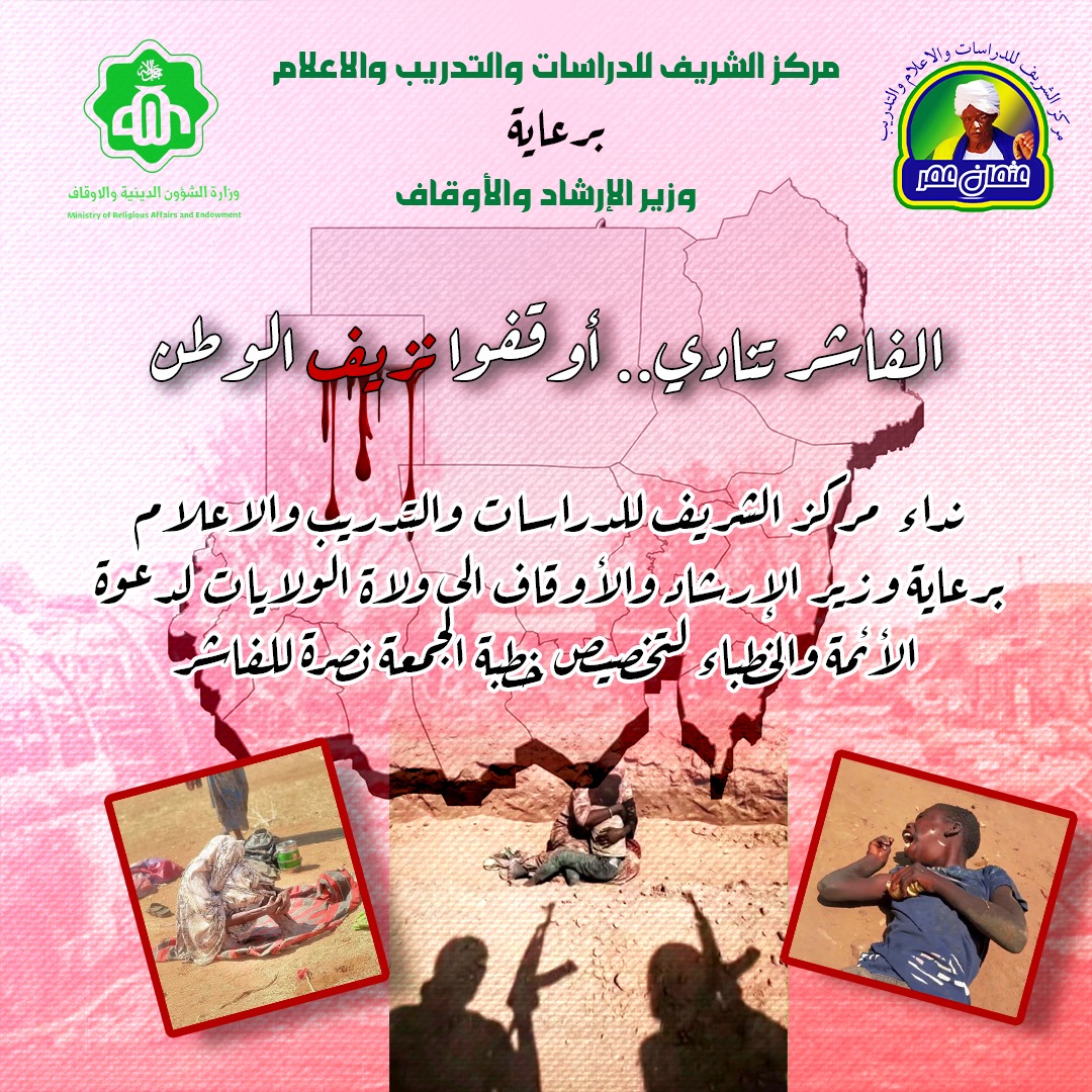 مركز الشريف يطلق نداء ديني ووطني.. تخصيص خطبة الجمعة نصرة للفاشر برعاية وزير الإرشاد والأوقاف